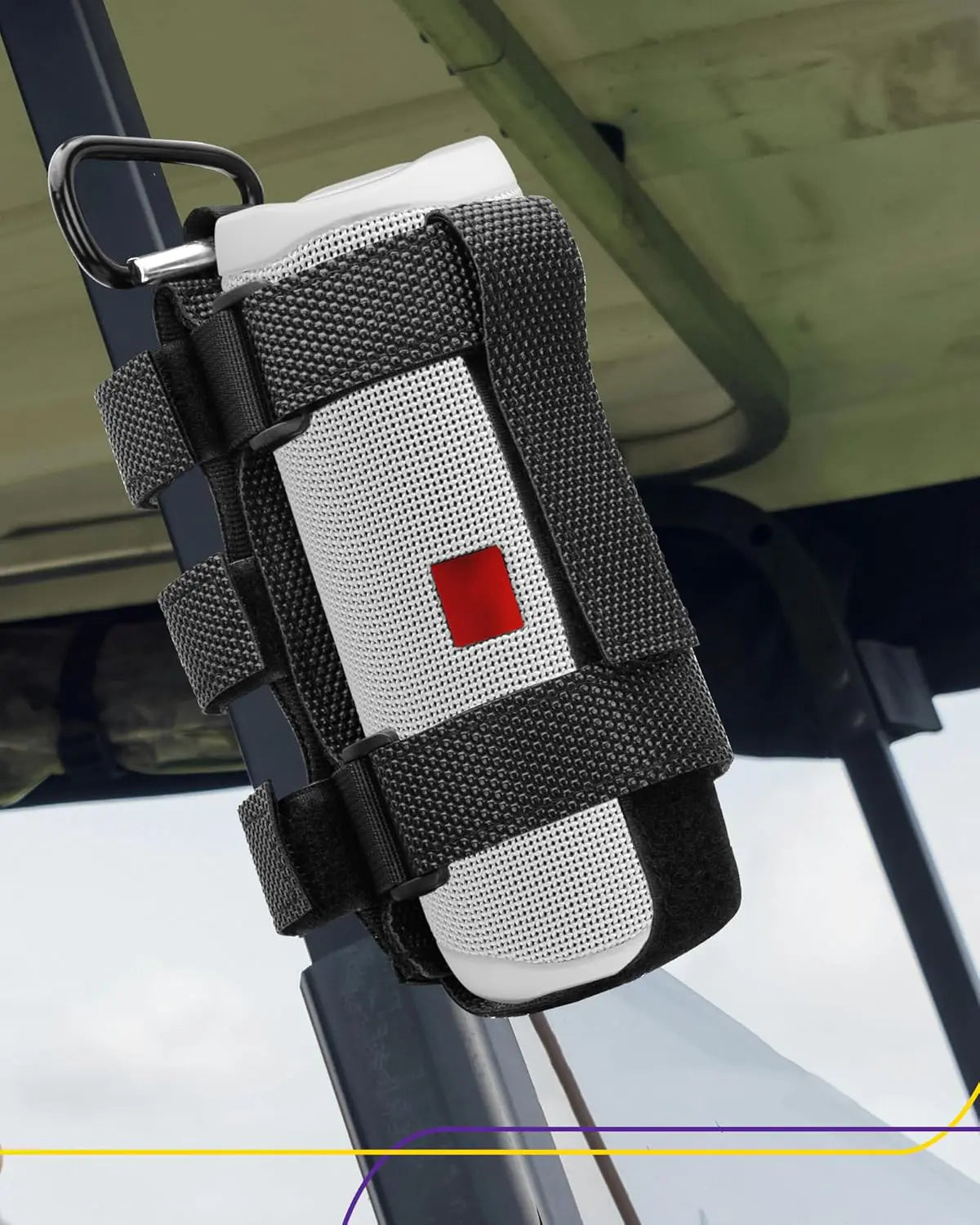 Universal Fit:19.1 inch adjustable strap with a max inner ring circumference of 13.2 inches—perfectly fits most speakers like JB L Flip 6/5/4. While adapting to diverse environments golf carts (EZGO/Club Car/Yamaha), bikes, boats, and UTVs. Beyond audio support, its adaptable design doubles as a storage solution for water bottles, umbrellas, small fire extinguishers. Enjoy outdoor music adventures with convenience.